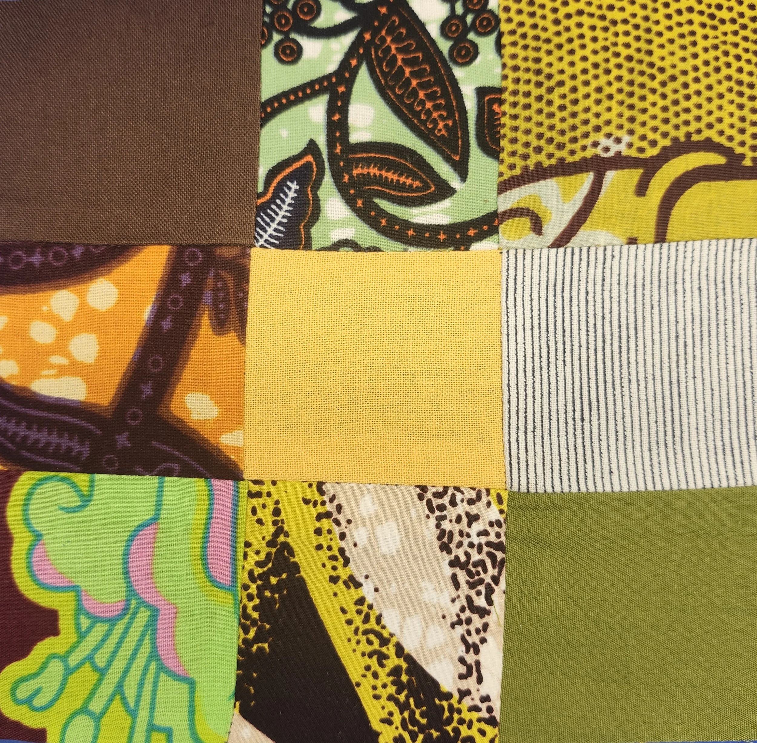 Patchwork: Sewing small pieces of fabric together to form a pattern.